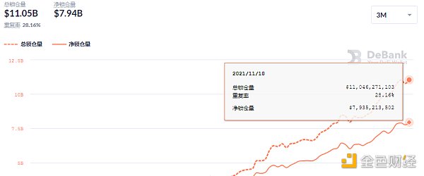 DeFi項目鎖定資產前十排名及鎖倉量,數據來源:Debank