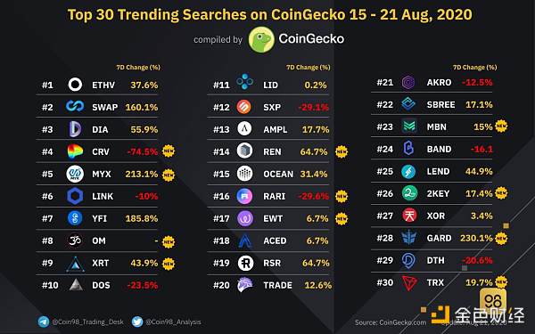 可以說,作為DeFi領域的明星項目,MANTRA DAO(OM)在今年以來持續受到市場的高度關注。尤其是8月21日官方宣布開啟OM在OKEx的充值之后,人氣持續飆升。據知名機構CoinGecko數據顯示,在近期的搜索熱度前30名中,OM作為唯一的新幣種位列熱度榜單第8名。