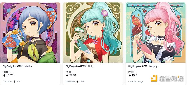 而且和其他NFT項目相似,DigiDaigaku NFT的版稅也是10%,目前DigiDaigaku交易量達到6455枚ETH,其版稅收入已經有645.5枚ETH。