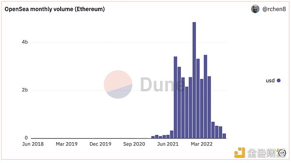 NFT 交易平臺 Opensea 的 Monthly Volume 來源:Dune@rchen8