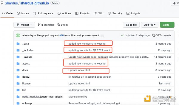 查閱Shardus官方的Github文檔,發現其近半年來只是在官方修改添加團隊成員信息,添加2022年路線規劃,技術上無任何更新。
