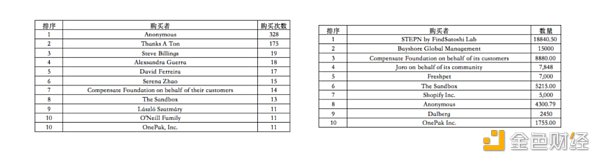 而對購買者的身份進行分析,在購買次數前 10 的購買者中,Thanks A Ton 是一家利用社交媒體 meme 將碳消除作為禮物進行銷售的初創公司。Steve Billings 是活躍在油管、Ins 等社交媒體的 KOL。Alexsandra Guerra 是 Nori 的聯合創始人兼公司發展總監。David Ferreira 是持左派觀點的 KOL。Compensate Foundation 是一家由芬蘭企業家和前議員 Antero Vartia 于 2019 年創立的基金會,致力于限制大氣中有害溫室氣體的數量,該基金及其創始人在北歐有較強影響力。The Sandbox 是大家熟悉的元宇宙項目,其與 Nori 的聯系還包括將 NRT 與藝術品結合的合作項目。László Szatmáry 是匈牙利國家隊的運動員。O'Neill Family 是愛爾蘭的一個王室家族,其下基金創辦于 2017 年,致力于社會慈善事業。而 Onepak 是一家提供可持續發展技術支持工具技術的公司,其客戶中不乏包括耶魯、哈弗大學,戴爾、微軟等 IT 公司,以及通用資本、美國銀行等金融客戶。根據其官網資料,該公司目前已經為可持續發展行業提供了近 10 億英鎊的設備。