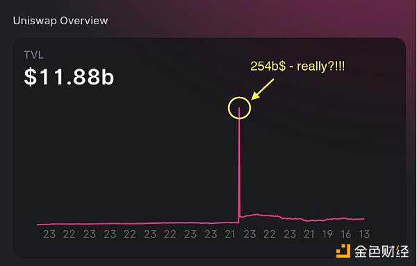 TVL如此重要,但我竟然發現最大的DeFi協議Uniswap v3 TVL的數據存在一些錯誤。不過對于我來說,最大的發現是官方的Uniswap 圖表也存在一些問題,以下是我發現這個問題的全程: