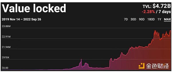 Arbiturm和Optimism無疑是最大的兩個L2,樂觀Rollup在L2上的所有DeFi TVL中占96.6%的份額。