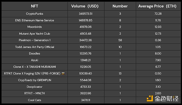 本周參與交易的人數突然較上周下降69%,這種斷崖式的下跌驗證了我們一直以來的猜想,參與NFT交易的人正在變少,大多數人更傾向于“賣出”,并且引起了“踩踏”現象,人們從NFT市場撤離轉入傳統加密市場的趨勢更加明顯。