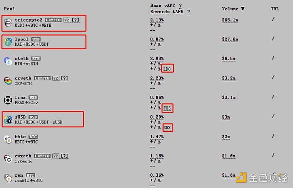 目前 Curve 上支持多資產池。Curve 也在非常積極地和項目方合作,項目方在 Curve 開池子,有不少項目方會提供做市獎勵,通過這種方式,項目代幣能獲得更好的交易深度,Curve 則能捕獲更多流動性。
