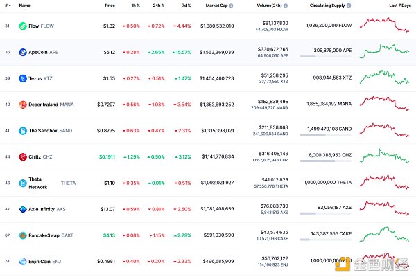 NFT總市值、市值排名前十項目 數據來源:Coinmarketcap