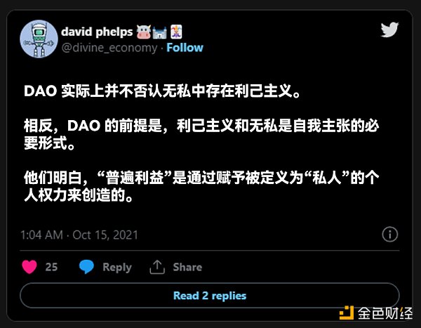 早在十月,大衛就進行了一項實驗,通過將共產主義一詞替換為 DAO 來轉發馬克思德國意識形態的三段內容。你可以自己判斷它的效果。