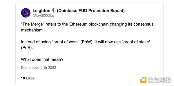 PoolTogether 聯合創始人 Leighton Cusack 表示,“合并”是指以太坊區塊鏈改變其共識機制。它不再使用“工作證明”(PoW),而是使用“權益證明”(PoS)。這意味著什么?