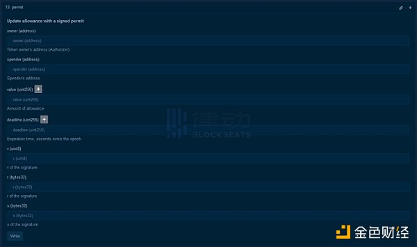 許可功能的引入原本是為了改善以太坊的用戶體驗,它只需一個簽名就可以讓用戶在不提交交易的情況下修改批準金額。也就是說,只要有了你的簽名,任何人都可以調用許可功能,并更新你對合約的批準額度。