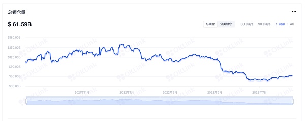 根據歐科云鏈的數據,當前以太坊鏈上總鎖倉價值為615.9億美元,近一個月處于緩慢增長狀態,但這主要與ETH等鏈上資產的價格反彈有關,并不能說明持續有新資金流入鏈上。