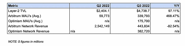 Optimism 和 Arbitrum 這兩個最大的 Optimistic Rollups,在本季度的流動性和社區用戶都顯著增加。