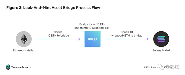 例如,Bob 在以太坊上鎖定了 10 個 ETH,并通過橋在 Solana 上鑄造了 10 個包裹的 ETH (wETH) 。原則上,Bob 在 Solana 上鑄造的 10 wETH 由鎖定在以太坊鏈上的 10 ETH 以 1:1 的比例支持。Bob 可以做相反的事情,首先在 Solana 上燒掉 10 個 wETH,然后在以太坊鏈上贖回鎖定的 10 個 ETH。在這種情況下,基本方面是管理供應并保證兩條鏈同步。
