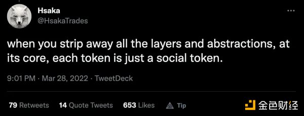 最后,所有代幣,無論它們是否是 NFT,都大致相同——都可以歸類為是一種社交代幣。這個想法最適用于從投機中獲得大部分價值的代幣。