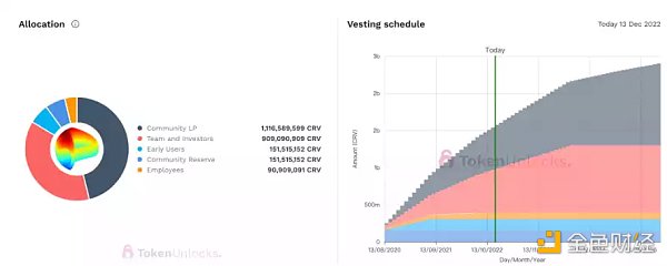 \(CRV 總量為 30.3 億,目前已經釋放 \)CRV 總量超為 15 億個,日均釋放的 CRV 約為 108 萬個。分配方式如下: