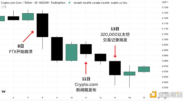 在新聞稿發布兩天后,推特用戶 Conor (@jconorgrogan) 發現了 Crypto.com 于 10 月 21 日向競爭對手Gate.io 交易所發送了 320,000 個以太坊。不僅如此,Gate.io在 5 至 7 天后將大部分以太坊返回,一來一回的過程中缺失了 35,000 個以太坊。這些資金都是通過 Marszalek在其儲備證明中所引用的兩個地址來發送和接收。鑒于這一揭發,猜測和謠言開始在幣圈中散布開來。FUD (恐懼、不確定性、懷疑)情緒導致 Crypto.com 的 CRO 代幣單日暴跌超過 16% 至 0.0666 美元/枚。經過 6 個小時的漫長等待,Marszalek 間接承認了這筆資金是錯誤發送的。至于 35,000 個以太坊的缺口,則是因為這兩個日期之間以太坊的價格變化:10 月 21 日,以太坊的開盤價為 1,282 美元;而 10 月 26 日至 28 日,以太坊價格介于 1,460 美元至 1,554 美元之間。無論如何,Crypto.com 或其客戶的其中一方,需要承擔這筆虧損。