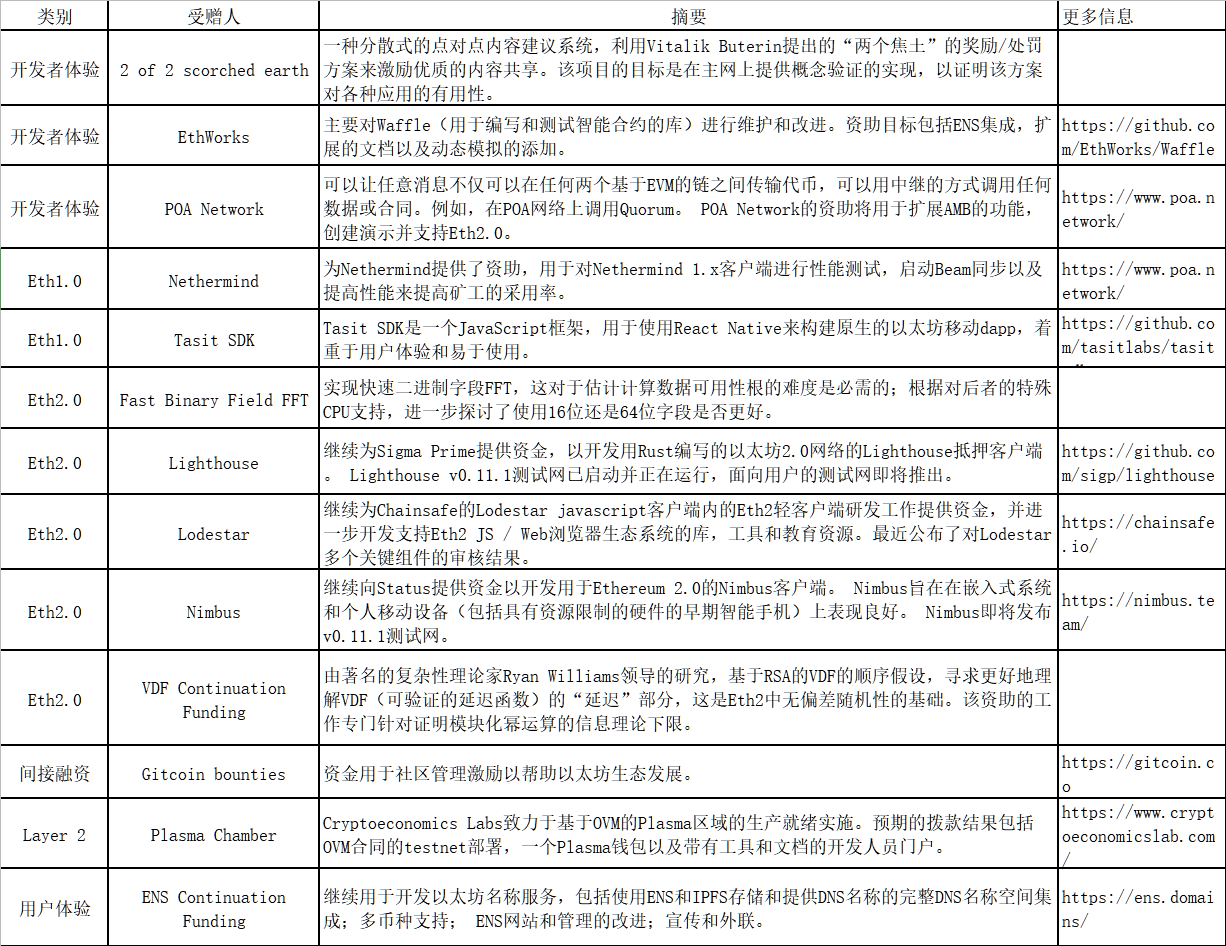 XRP/HKD+1.22%5月7日,以太坊基金會公布了2020年第一季度的資助名單,其中包含了關于開發者體驗、用戶體驗、Eth1.0和2.0的測試網團隊等多項項目資助,總計約256萬美元,公告如下,金色財經整理: