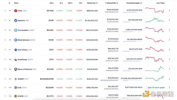 24小時NFT交易量、交易量前十項目 數據來源:Coinmarketcap