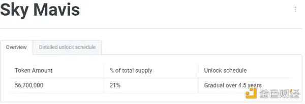 分配給Sky Mavis(股權實體)的代幣在4.5年內解鎖——乍一看,這似乎是一個相對長期的歸屬期,但問題在于細節。