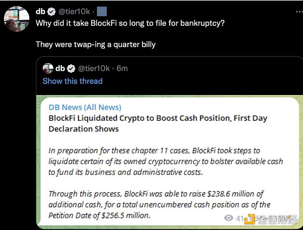 通過這一過程,BlockFi能夠籌集到2.386億美元的額外現金,截至破產申請日期,其無擔保現金頭寸總額為2.565億美元。