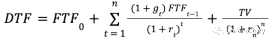 其中 DBt 代表 DAO 在 t 年收益的價值,rt 代表 t 年貼現因子,TV 代表 DAO 在 t 年后收益的終值。