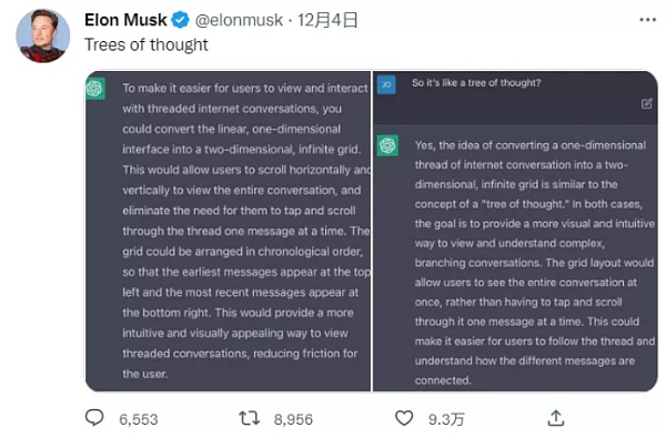 就連馬斯克也湊了一把熱鬧,12月2日他發推稱:“許多人陷入了該死的瘋狂ChatGPT循環中”。
