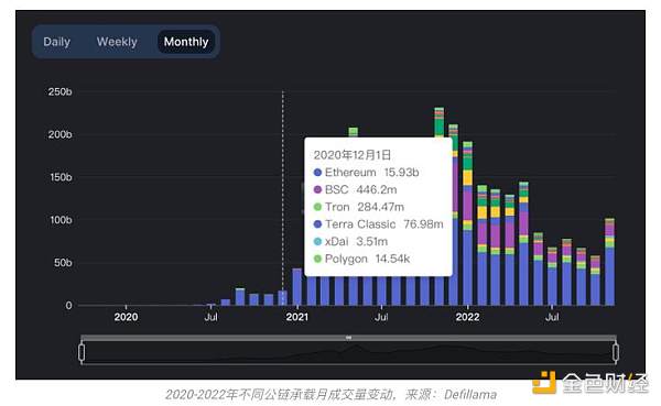 值得注意的是,除 ETH 外,支撐加密市場的其他底層公鏈,也在熊市中保持著良好的發展態勢。與 ETH 占絕對支配地位的 2020 年 12 月不同,在 2022 年 11 月結束時,市面上至少有 10 條成熟公鏈供開發者與用戶選用。其中,Arbitrum、Optimism 等成熟 Layer 2 解決方案,以及 Avalance、Polygon 等在上一輪牛市中興起的公鏈,仍然擁有著相對成熟的用戶群與開發者群體,承擔著百億美元以上的月成交量。毫無疑問,這為加密市場在下一輪牛市的勃興打下了堅實基礎。