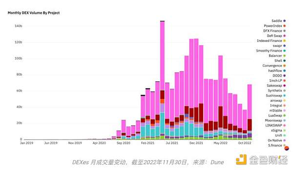 當投資者從加密市場的歷史經驗教訓中逐漸達成共識,他們的眼光便重新轉向了 DEX。與 2022 年 10 月相比,在僅僅一個月后,FTX 事件的爆發,推動著 DEX 的總成交量回升至近 700 億美元——近乎翻倍。錢包的重要性逐漸凸顯,錢包類項目開始獲得來自一線機構的成百上千萬美元投資,成為了 2022 年年末的新風口。
