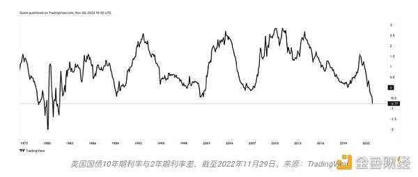 大幅加息與高利率峰值帶來的直接后果之一就是經濟衰退。由于對通脹的壓制是各主要央行的核心目標,從各央行官員的表態看,盡管可能會造成通貨緊縮與衰退,但在“保通脹目標還是保經濟”的二選一問題下,他們最終選擇了保證實現通脹目標。 2 年期與 10 年期美債收益率差已經達到了 1980 年以來的峰值,投資者的隱含衰退預期甚至已高過 2000 年互聯網泡沫破滅及 2008 年金融危機時的預期。