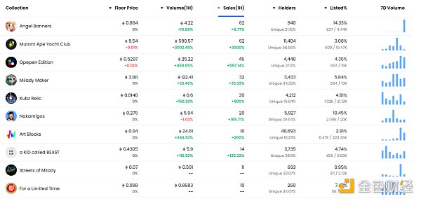 24小時內銷售前十的NFT 數據來源:NFTGO