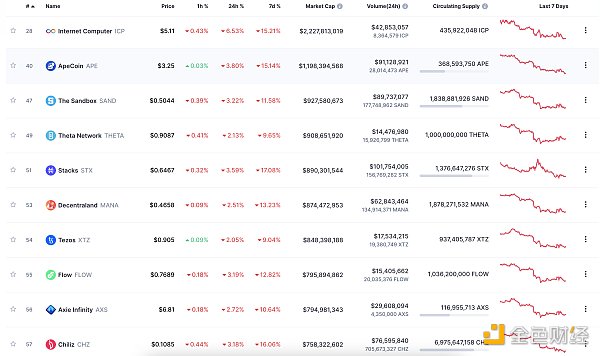 NFT總市值、市值排名前十項目 數據來源:Coinmarketcap