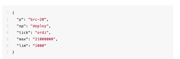 第一批BRC-20通證包含以下JSON數據,定義了通證的名字、每次鑄造量(上限為1000個)以及總量(上限為2100萬個):