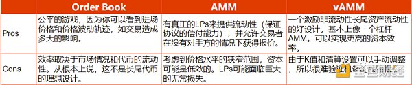 對于Orderbook、AMM、vAMM這三種機制的的簡單優劣分析可見下圖: