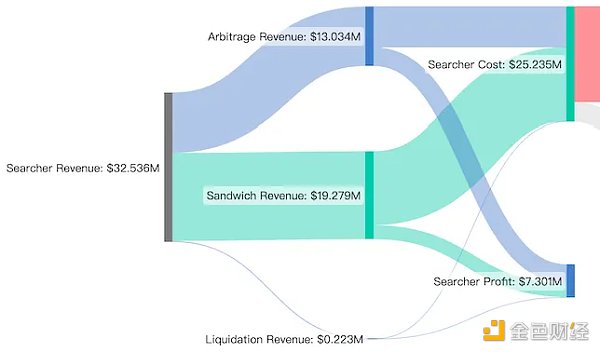 值得注意的是,搜索者和其他用戶支付的部分燃氣費將以基本費的形式被燒毀,而普通交易支付的基本費(2.272億美元)并未包括在圖中。