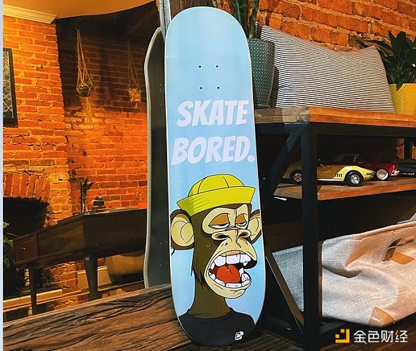 Skate Bored 是一項小規模的 BAYC IP 計劃,由名為 WoundedPixel(或簡稱 Pixel)的匿名開發者于 2021 年發起。作為 BAYC #7676 的所有者,Pixel 通過與更大的 BAYC 社區互動,發展了定制滑板品牌。