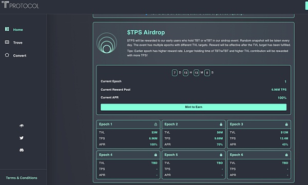 TBT 可在去中心化交易所進行交易,TProtocol 將在 Curve Finance 上推出流動性池以確保最小滑點。TProtocol 還允許用戶抵押 TBT-3CRV LP 以獲取 esTPS 獎勵,以激勵 DeFi 用戶使用 TProtocol 協議和 TBT,從而大大提高 TBT 的流動性并確保交換 TBT 時的低交易成本。