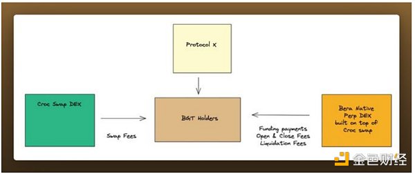 現在我們已經了解了三種代幣。ETH和BTC存儲在金庫里賺取BERA,即該公鏈的gas代幣。這些資產與HONEY配對,并且用作本地DEX的流動性。IL通過永續期貨來對沖。流動性為王。
