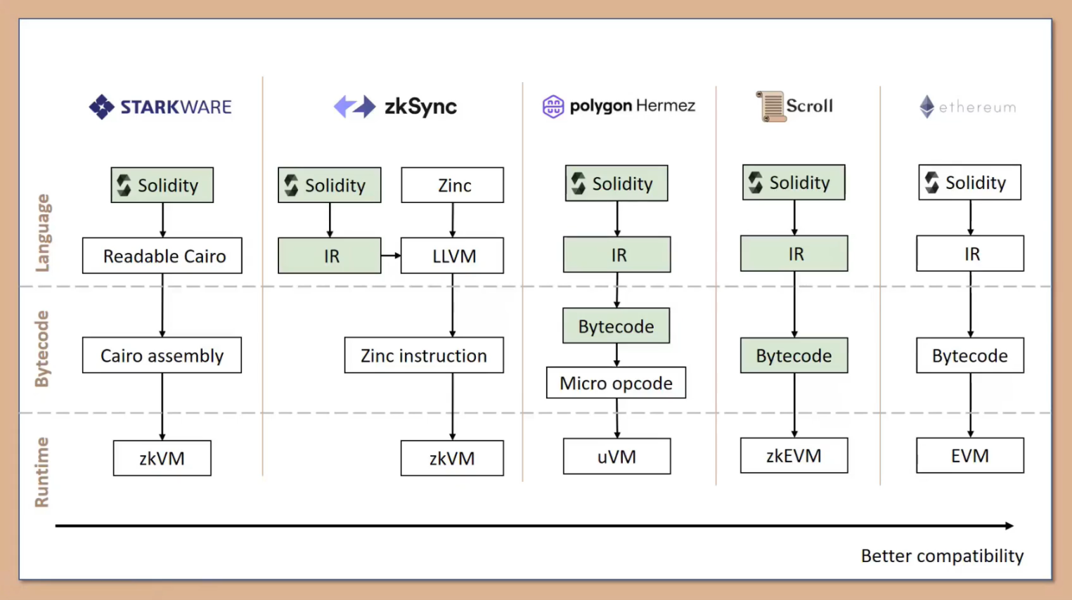 術語 zkEVM 是用來描述在 EVM 字節碼引擎上運行智能合約的軟件,并為特定的計算(或交易)生成收據。這個軟件通常可以證明兩個或多個收據是有效的,并生成另一個收據。通過使用這種機制,zkEVM 可以運行許多交易,并使用一個收據來表示它,這被稱為 「Rollup」。用 Solidity 編寫的項目可以使用 zkEVMs 來擴展交易,而不是在鏈上進行所有計算,在區塊鏈上發布一個單一的收據來代表許多發生在鏈外的交易。zkEVM 有很多類型,如果你想了解它們,你可以在這篇文章中閱讀更多。