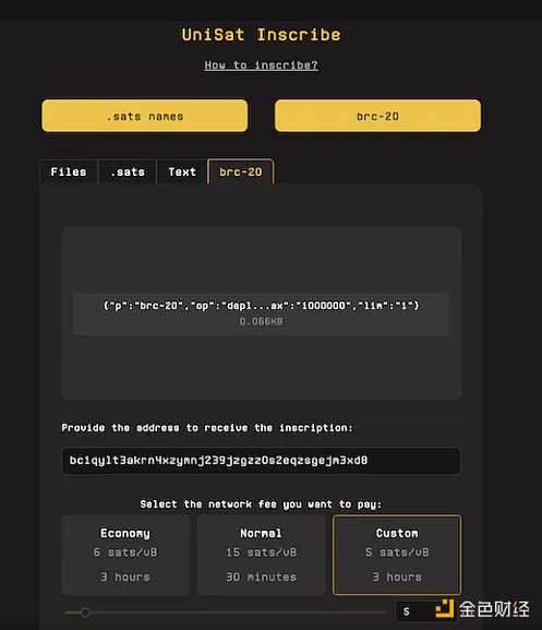 步驟3:輸入你的比特幣地址以接收BRC-20并選擇網絡費用