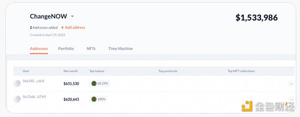 其次是通過ChangeNOW交易所資助的兩個錢包。他們以平均0.1 ETH的價格買入總計5T PEPE代幣,投資組合價值為150萬美元。