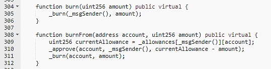 我們從上述的攻擊過程不難發現,本次事件的主要問題在于第2步與第3步,攻擊者調用了approve和burnFrom函數之后,為什么就能直接調用transFrom函數將“其他人”的代幣轉移走?