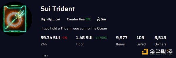 另一方面,Clutchy并不是唯一活躍的Sui NFT市場,去年秋天在Aptos區塊鏈上推出的NFT市場Souffl3也擴展到了Sui Network,該平臺上的頭部NFT項目也都沒有引發任何銷售轟動,比如Souffl3上最大的Sui NFT項目是“Sui Trident”,上線后24 小時內只累積了價值約6.5萬美元的交易額。
