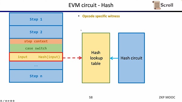 同樣的方法可以適用于zk不友好的哈希函數,構建哈希函數的查找表,將執行蹤跡中的哈希輸入和輸出映射到查找表,利用額外的哈希電路 (Hash Circuit) 來驗證哈希查找表的正確性。