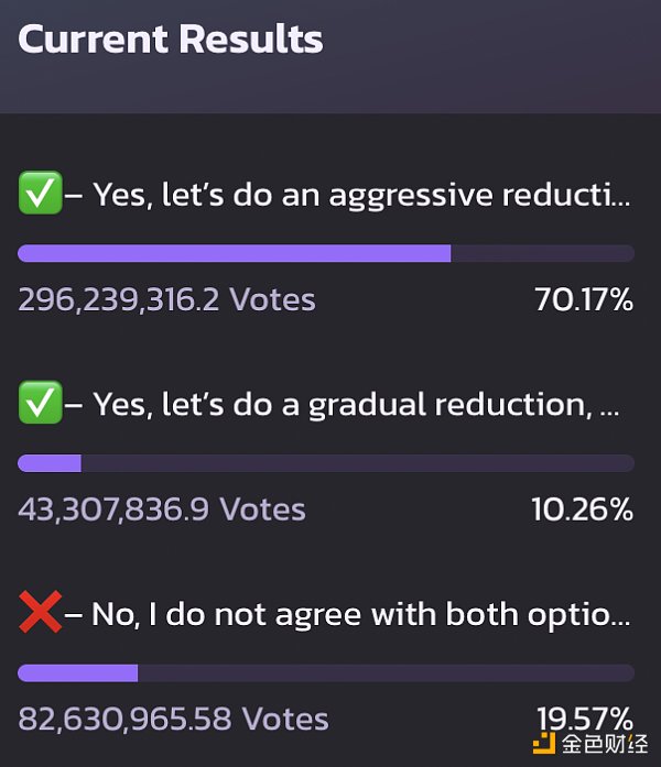 截至發稿時, 70.17% 的投票者支持該提案, 10.26% 的成員同意逐步而非激進地降低通脹, 19.57% 的成員拒絕這兩種模式。