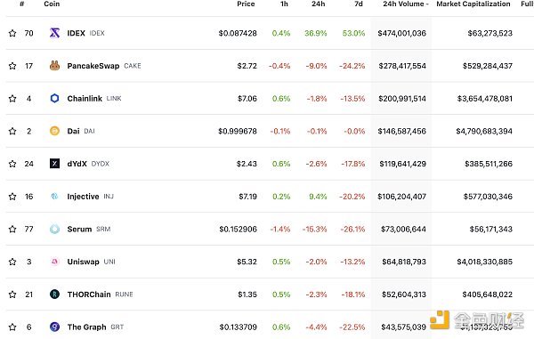 過去24小時去中心化交易所的交易量 數據來源:coingecko
