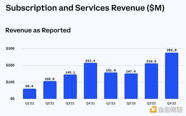 另外,該公司的訂閱和服務收入同比增長 32.5% 至 2.828 億美元(如下圖)。這主要受益于 Coinbase One 計劃以及 ETH 質押增長的持續推動。