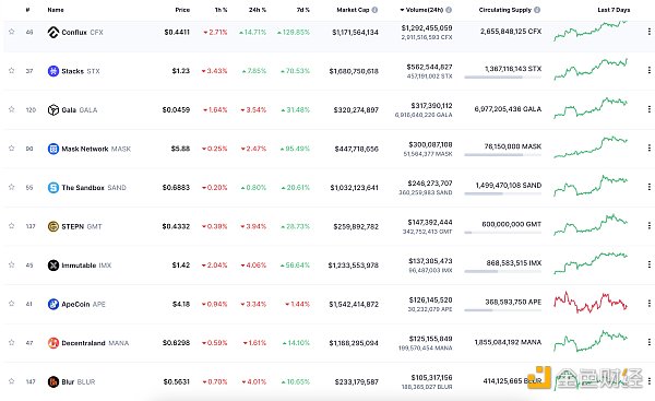 24小時NFT交易量、交易量前十項目 數據來源:Coinmarketcap