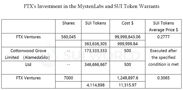 除了約 0.28-0.31美元之間的Sui Token 投資籌碼,對于領投方FTX來說,還額外獲得了5.19億枚Sui Token的做市籌碼。