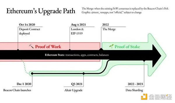 2020年12月,以太坊引入了Beacon鏈,也稱信標鏈,代表著以太坊將由PoW向PoS轉變。