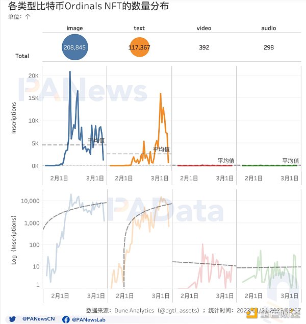 PAData 綜合了比特幣的鏈上數據(1 月 21 日至 3 月 7 日)和 OrdinalsNFT 的交易數據對當前的 NFT 類型、交易規模、用戶規模、礦業變化和網絡基本面進行分析,結果顯示: